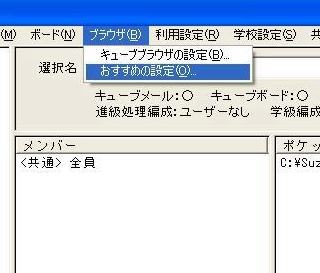 おすすめの設定をする学年・クラスを選択しブラウザのおすすめの設定をクリック。