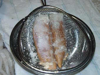 2.ふに塩をしてしばらくおきます。