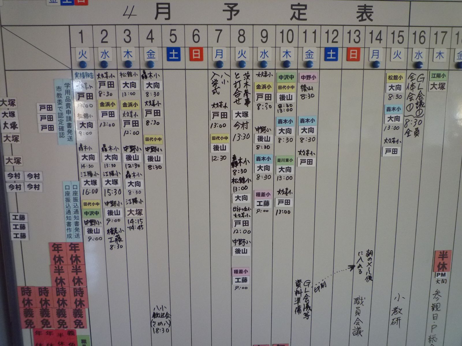 | 4/28(月) | 事務職員未配置校に関する連絡会について、大塚室長と今村室長補佐が八戸市教育委員会で茨島学校教育課参事と打合せ。 |